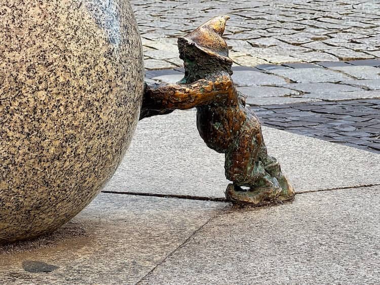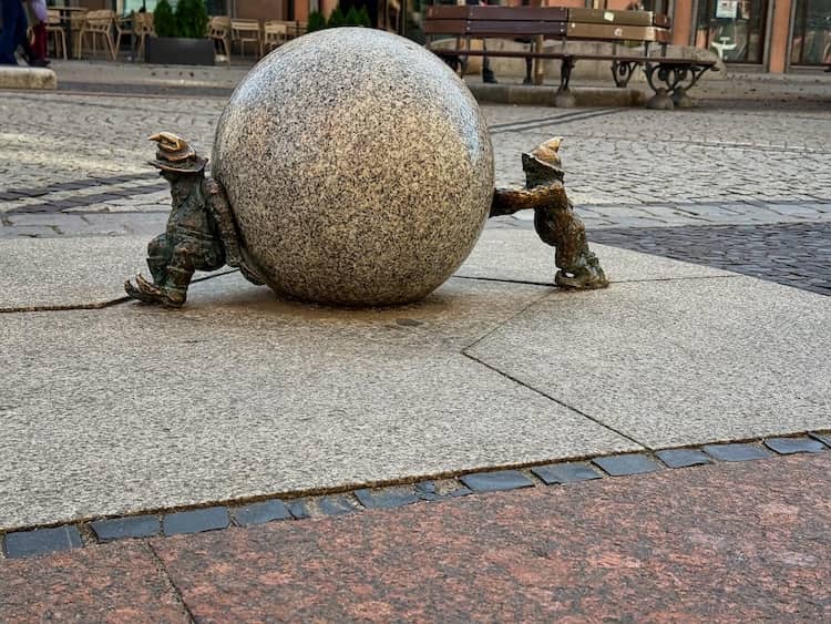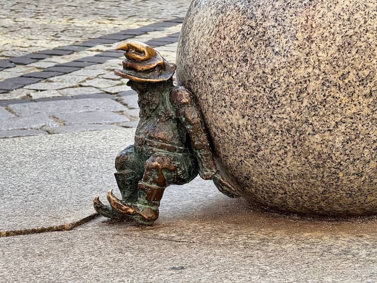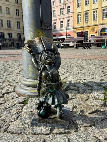 Läuft man durch die Stadt entdeckt man immer wieder kleine Zwerge aus Bronze. Es sollen über 700 Zwerge in der Stadt geben, aber wir haben nicht alle entdeckt. Die Zwerge haben eine politische Geschichte