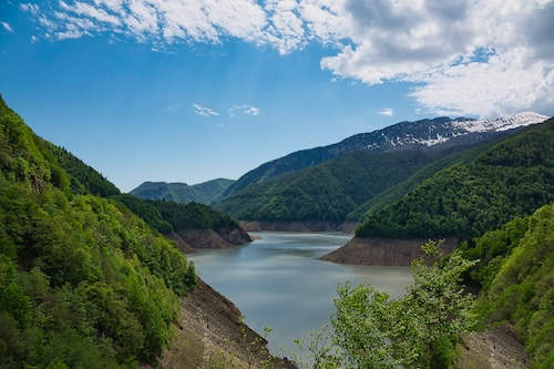 Wir passierten eine Wasserstelle, an der wir unseren Wassertank wieder füllen konnten, fuhren am Enguri-Staudamm vorbei ohne ihn nochmal zu sehen und bogen dann ab ins „Hinterland“. Der Himmel war inzwischen wolkenlos und die Sonne funkelte.