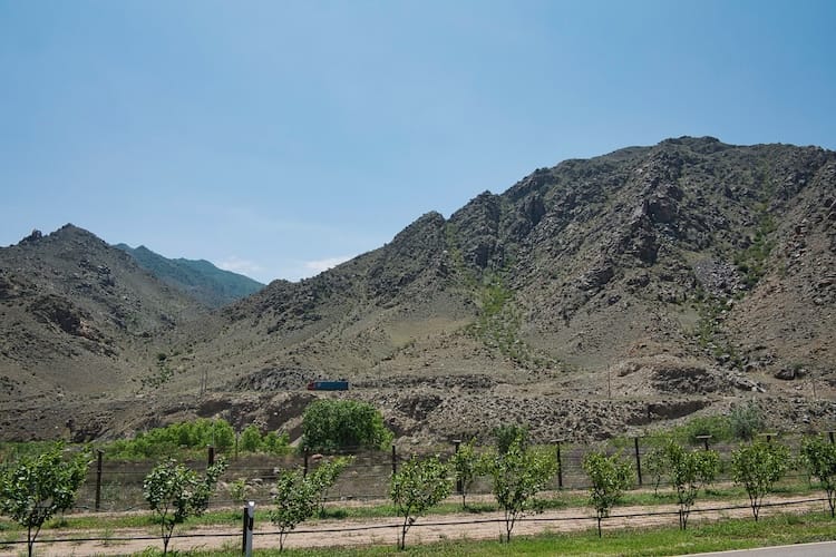 Die Straße führte ins Tal hinunter und direkt an dem Grenzzaun vorbei, der Armenien vom Iran trennt. Links von uns LKW im Land der Mullahs, rechts noch Armenien. Die Grenzposten häuften sich, hier wird bewacht, jeder seine Seite des Zauns.