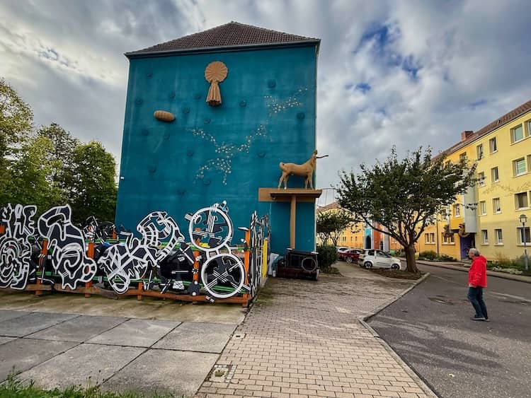 Ein Wohnviertel ist dagegen recht hübsch hergerichtet, die ehemaligen Plattenbauten bunt bemalt und mit allerlei Objekten verziert. Man sieht dort Steinböcke , Obst und Gemüse und andere Objekte an den Wänden kleben. Dieses Viertel wird als Pop-Art-Viertel bezeichnet.