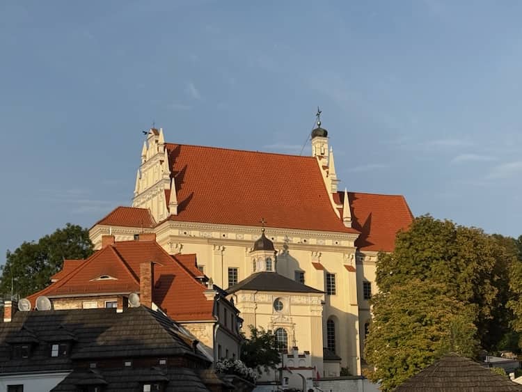 Wir stiegen zur Kirche auf, dann wieder hinunter und zum Ufer der Weichsel, die hier am Ort vorbeifließt. Ein schöner Sonnenuntergang war zu bestaunen.