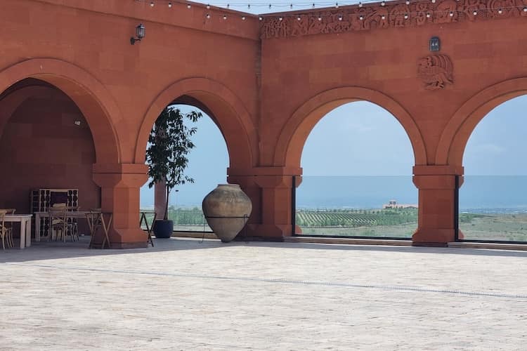 Danach ging es bei herrlichem Sonnenschein und Hitze hinunter nach Sasunik südlich der Stadt Ashtarak, wo wir gestern die Schokoladenfabrik besucht hatten. In Sasunik befindet sich die „Armenian Wine Company“, ein seit 2008 familiengeführtes Unternehmen, das der größte Weinproduzent des Landes ist.