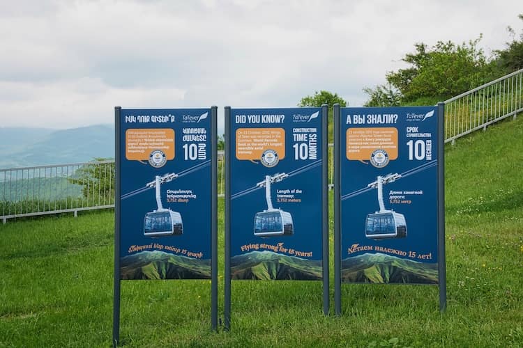 Sie führt über die Vorotan Schlucht vom Kloster Tatev zur gegenüberliegenden Station in Halidzor. Die maximale Höhe über der Schlucht beträgt 320m. Es gibt drei Stützpfeiler, doch der längste Abschnitt ohne Stütze ist 2,7 Kilometer lang. Eine Fahrt dauert 12 Minuten und sie ist einfach Pflicht, wenn man in dieser Gegend ist. Sie ist ein einmaliges Erlebnis in einer phantastischen Bergwelt.